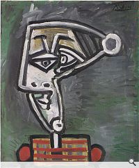 | Pablo Picasso: Tête de femme, 1952. Öl auf Leinwand, 55 x 46,8 cm; Wilhelm-Hack-Museum. © VG Bild-Kunst, Bonn 2018 | Markus Vater: Die Fremde, 2008. Acryl auf Leinwand, 200 x 150 cm; Wilhelm-Hack-Museum |
